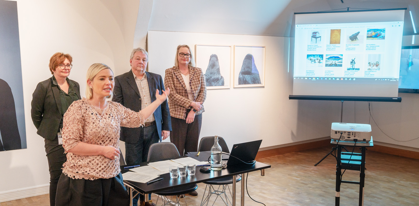 Lilja Alfreðsdóttir, Mennta-og menningarmálaráðherra, Ragnar Th Sigurðsson, formann Myndstefs, Harpa Þórsdóttir, safnstjóri Listasafns Íslands og Margrét Hallgrímsdóttir Þjóðminjavörður.